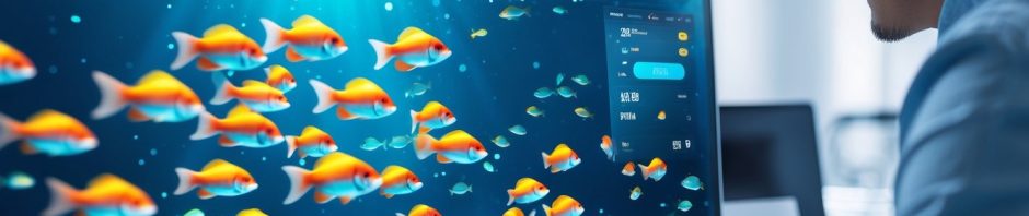 Seseorang menggunakan perangkat digital dengan tampilan permainan ikan yang berwarna-warni di layar, menunjukkan suasana permainan online yang menyenangkan dan terpercaya.
